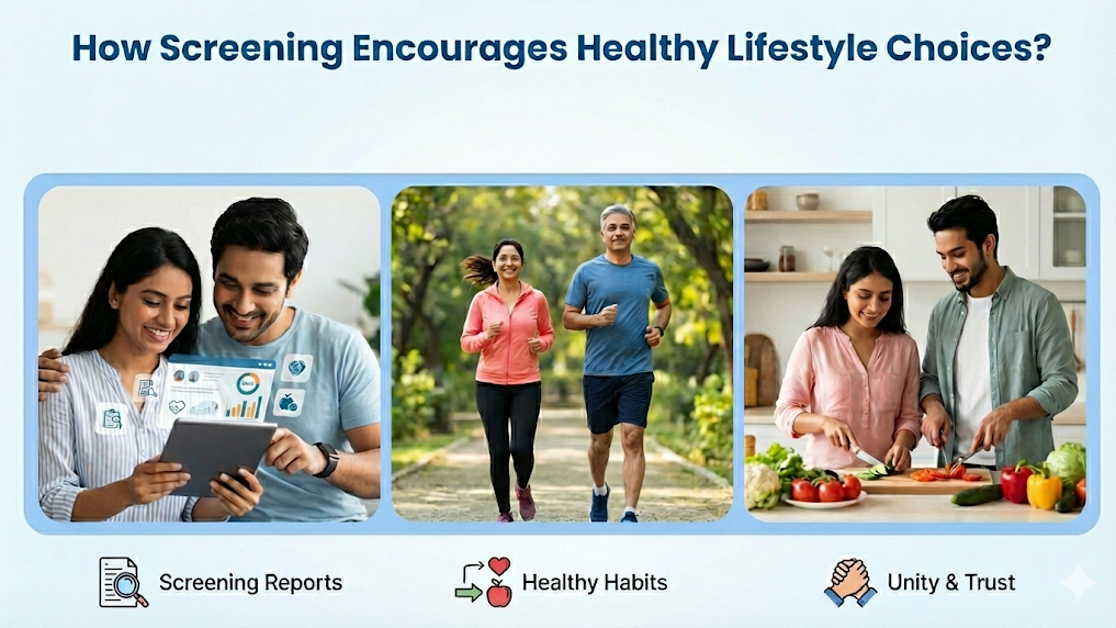 The screening reports help couples take smart steps for daily life. The simple fixes like healthy food, daily walk, good sleep & less stress improve life quality. The couples who make these changes together build a strong bond. The new habits bring mental peace & physical strength which makes future planning easy. The shared effort brings unity & trust in the relationship.