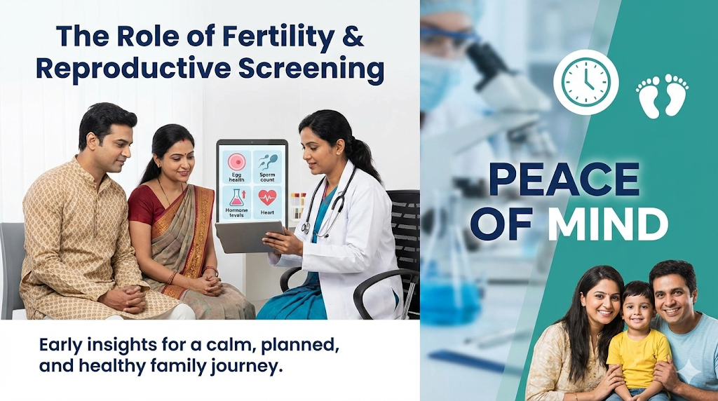 | Fertility & Reproductive Screening | Hormone balance egg health sperm count | The early clarity helps couples plan pregnancy safely & calmly. |